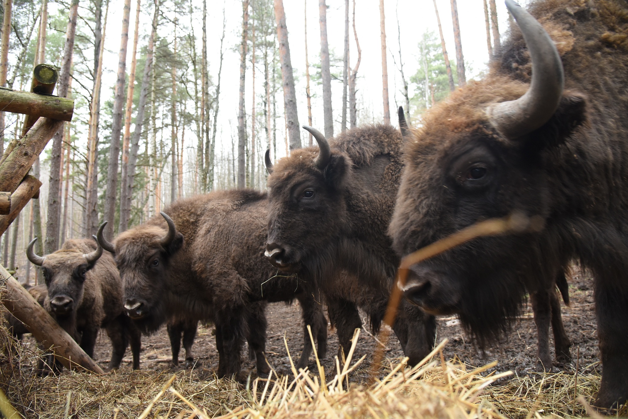 И вот красная ленточка перерезана, открыты ворота вольера. Две самые смелые зубрицы идут на разведку… Как молодые зубры адаптируются в дикой природе? Кажется, они совсем не боятся человека.