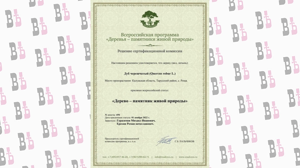 Рощинский дуб, по данным заявителей, вырос на