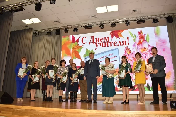 В торжественной обстановке состоялось вручение наград федерального, областного и муниципального уровней лучшим в профессии. Школьники подготовили для педагогов литературно-музыкальную композицию «Спасибо вам, учителя», вокальные и хореографические номера. В этот день в школе работала фотовыставка «Заглянем в глаза учителей».