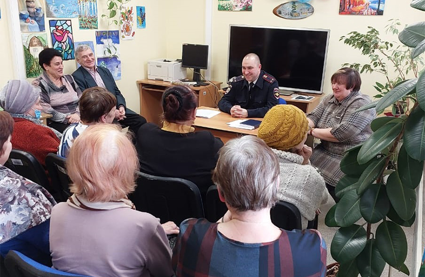 В течение первого же месяца в центре сложилась группа активистов – в основном женщин пенсионного возраста. Они наполнили книжные шкафы принесенными из дома хорошими книгами, начали устраивать чаепития со своей выпечкой, обмениваться рецептами, новостями, рассказывать об увлечениях… Ну и, конечно, получать много новой информации, потому что каждый день в 14.00 в центр приходит новый лектор из числа партнеров Соцфонда: врачи, представители МВД и МЧС и, конечно же, специалисты разных отделов отделения СФР. Рассказывают о льготах и пособиях, о возможностях получения различных услуг, о том, как уберечься от мошенников. Обучают пользоваться компьютером, который в центре тоже есть, и работать со смартфоном. Особенной популярностью пользуются у посетителей центра лекции о здоровье и долголетии, а также занятия с психологом, где они учатся даже медитировать. Временными рамками эти встречи не ограничены: специалисты общаются с присутствующими на лекции столько, сколько необходимо.