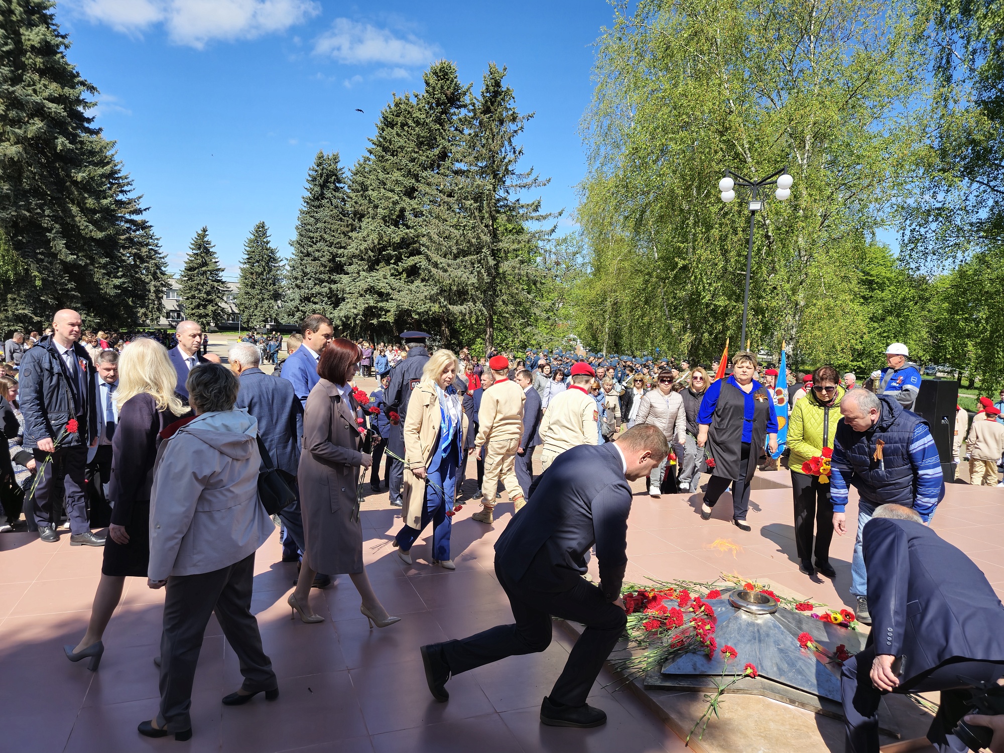 Далее зажжённые факелы вручили почётным гостям мероприятия: Александру Шляпникову, Виталию Ковалёву и Василию Зарайскому, которые подошли к чаше Вечного огня и торжественно зажгли его одновременно со всеми участниками Всероссийской акции «Храним огонь Победы». Затем присутствующие почтили память павших воинов минутой молчания и возложением цветов.