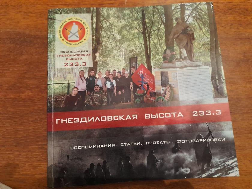 Книга вышла в Новосибирске в конце прошлого года. Она еще сохранила запах типографской краски и очень дорога спас-деменцам, так как в ней помещены воспоминания, статьи, впечатления и эмоции – все то, что объединил в себе проект «Гнездиловская высота 233,3», реализованный при поддержке Фонда президентских грантов. Он является логическим продолжением ежегодного проекта Вахты Памяти – «Из камня его сапоги», который проводят у мемориального комплекса герою Великой Отечественной войны, поэту-сибиряку Борису Богаткову в Новосибирске.