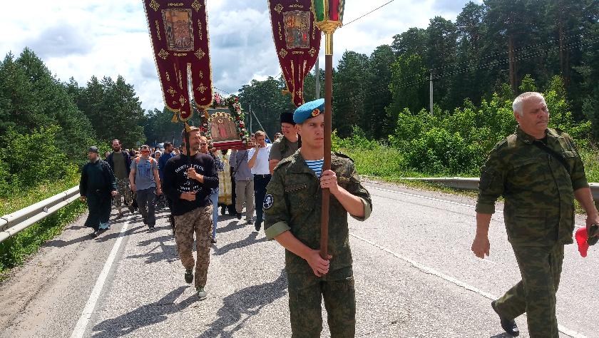 Обычно царский крестный ход в Козельске начинался от стен Оптиной пустыни, но в этот раз участники шествия собрались у Богоявленского храма на мехзаводе. В остальном маршрут не изменился. Объездная дорога – Никольский храм - по объездной вокруг города - Благовещенский храм – мехзавод. В пути участники крестного хода делали остановки, совершали молебны, читали акафист.