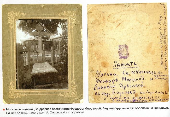 Наша газета уже не раз писала о том, как в Боровске широко отметили 350-летие духовного подвига боярыни Феодосии Морозовой (в иночестве - Феодоры), одной из выдающихся представителей раннего старообрядчества. Именно здесь прошли последние годы ее жизни, здесь она со сподвижницами была уморена голодом и холодом, здесь и упокоилась.