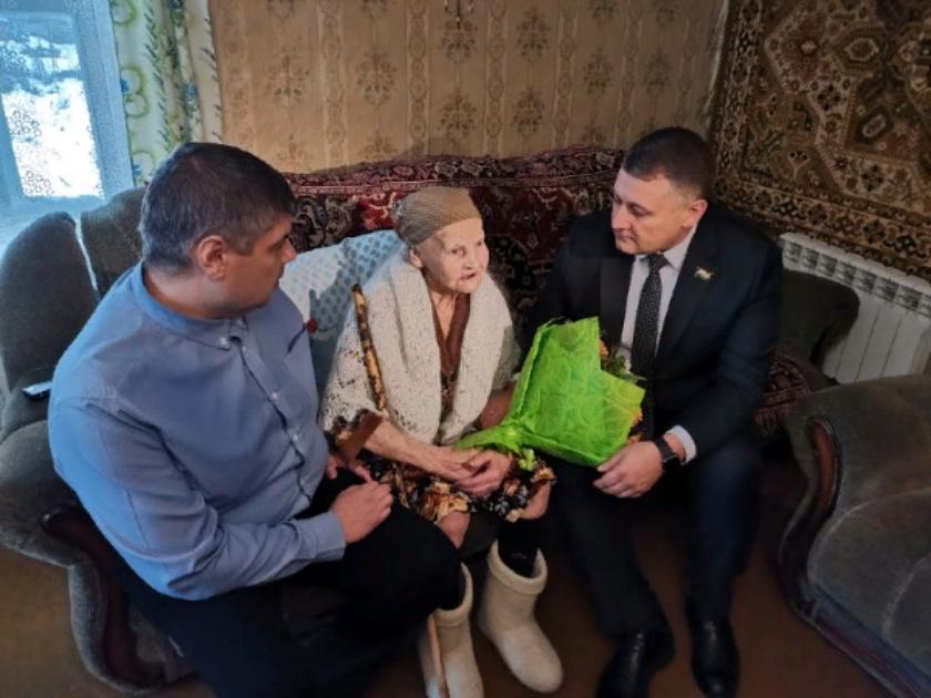 Поздравить именинницу приехали депутат Законодательного Собрания области, член партии «Единая Россия» Сослан Такаев и исполняющий обязанности главы администрации сельского поселения «Деревня Ястребовка» Алексей Коробейников. Елизавета Матвеевна обрадовалась вниманию и очень растрогалась, когда парламентарий преподнес ей букет цветов и подарок.
