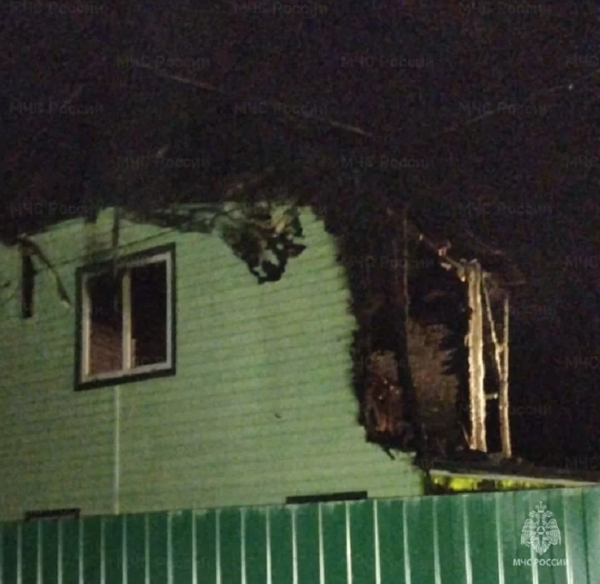Информация о возгорании в СНТ «Кривское» по улице 1-я Лесная поступила к спасателям около половины десятого. Как можно увидеть по фото, которое предоставила пресс-служба ГУ МЧС России по Калужской области, второй этаж дома наполовину выгорел, также повреждена крыша и фасад. Пострадавших в пожаре нет. На месте происшествия работали шесть специалистов пожарно-спасательного подразделения федеральной противопожарной службы МЧС и две пожарные машины.