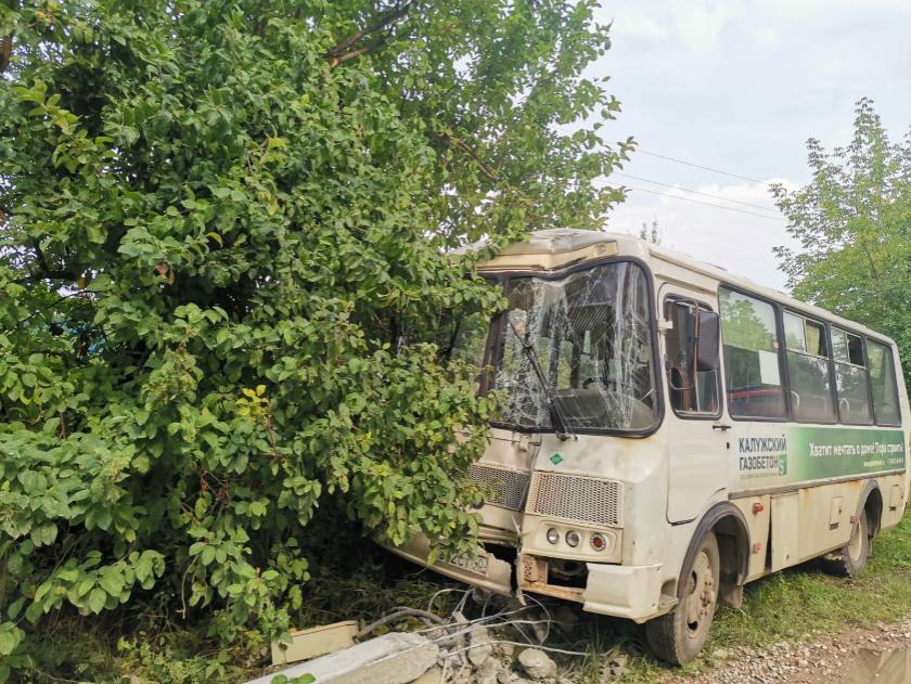 Авария произошла сегодня, 2 августа, около 14.30 на улице Южной в поселке Товарково Дзержинского района Калужской области. Рейсовый автобус ПАЗ, перевозивший людей по маршруту Калуга-Товарково, во время движения зацепил обочину и влетел с опору линии электропередачи.