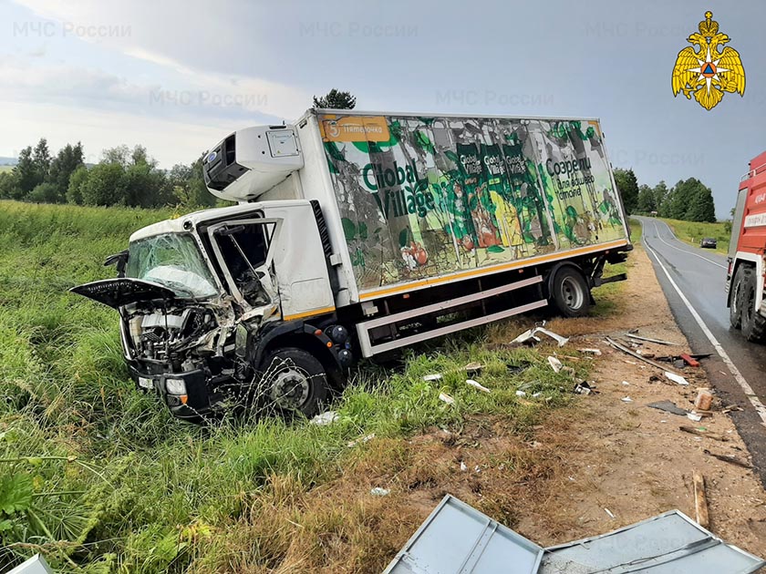 От столкновения «Ивеко» съехал в кювет. В МЧС рассказали об одном пострадавшем в ДТП. Ему потребовалась помощь врачей.