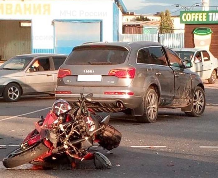 Как сообщили в пресс-службе главного управления МЧС по Калужской области, в среду на Варшавском шоссе в Белоусове Жуковского района около 19 часов произошла авария. Как выяснилось, столкнулись мотоцикл «Yamaha» и немецкий кроссовер «Audi Q7». Байкер получил травмы, ему потребовалась помощь медиков.