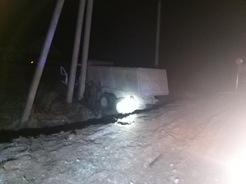 В результате МАЗ съехал в кювет, едва не протаранив опору электропередачи. Как сообщили спасатели, в результате ДТП есть пострадавшие.