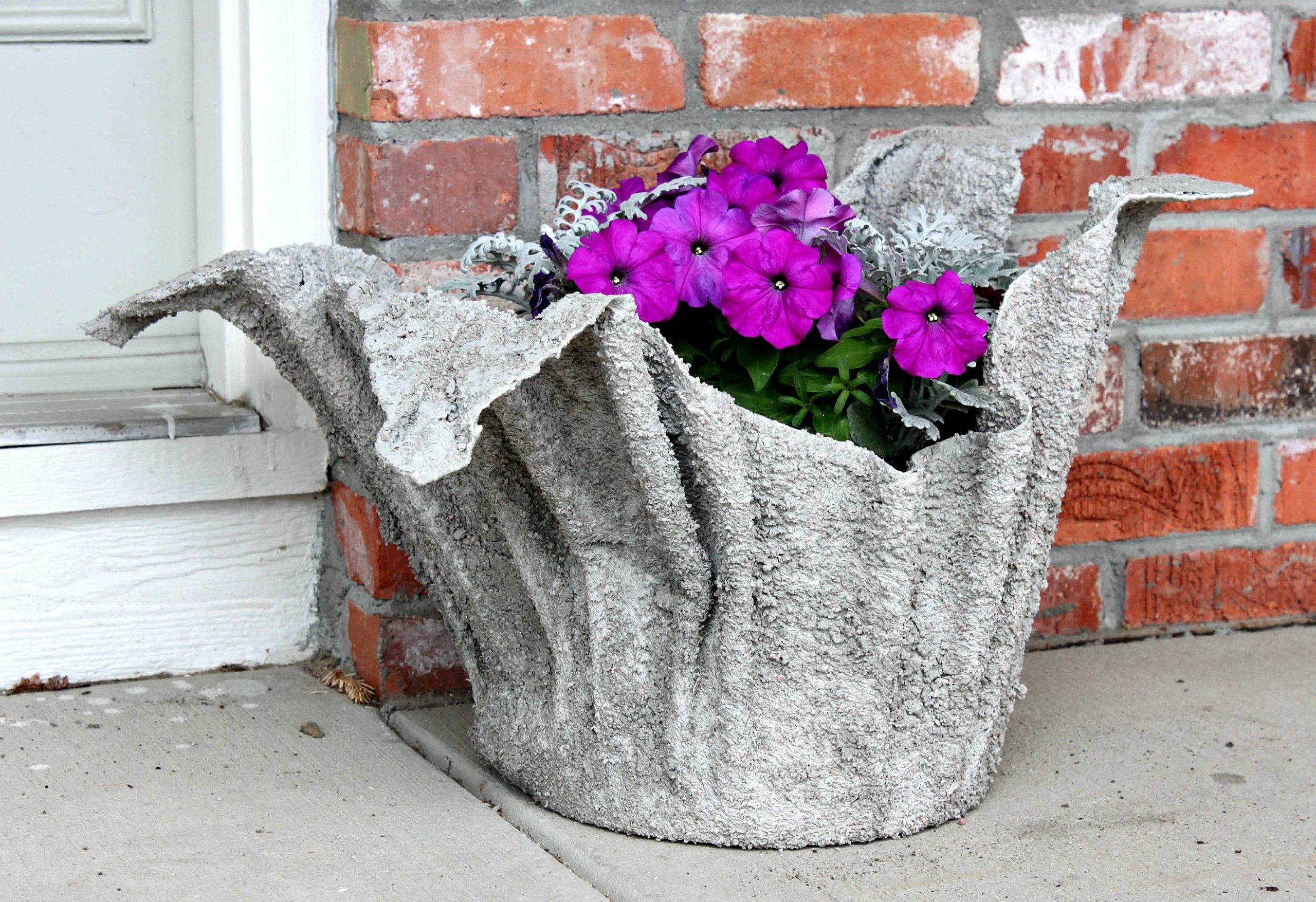 Кашпо из полотенца. Просто окунаем полотенце в цементный раствор и надеваем на форму.