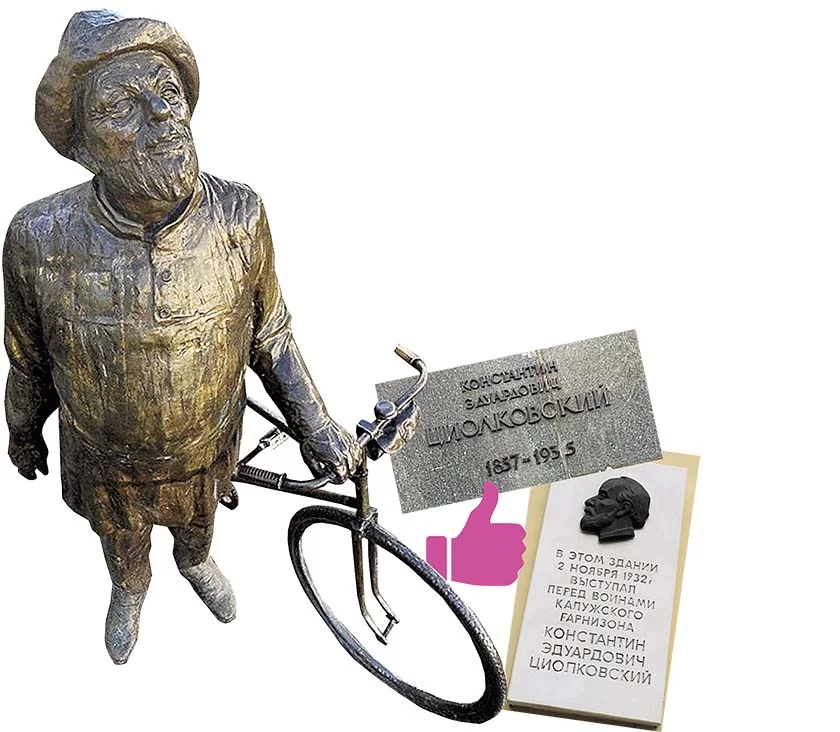 Один из неофициальных символов Калуги – Циолковский с ракетой в сквере Мира – появился в 1957 году. На мраморном постаменте выбита знаменитая цитата Циолковского: «Человечество не останется вечно на Земле, но в погоне за светом и пространством сначала робко проникнет за пределы атмосферы, а затем завоюет себе все околосолнечное пространство».