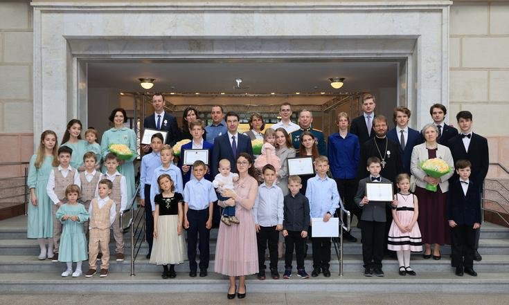 «семья, где растут трое, четверо и более детей, уже сама по себе имеет высокий статус и должна иметь в общественном сознании такой статус, и должна поддерживаться со стороны государства. Потому что для России многодетная семья – это историческая традиция, и нужно эту традицию возвращать. Она востребована нашим современным развитием, должна утвердиться как норма, как ценностный ориентир для общества и как важнейший приоритет для государства. Многодетная крепкая благополучная семья – это базовый ответ на демографические вызовы, с которыми мы сталкиваемся».