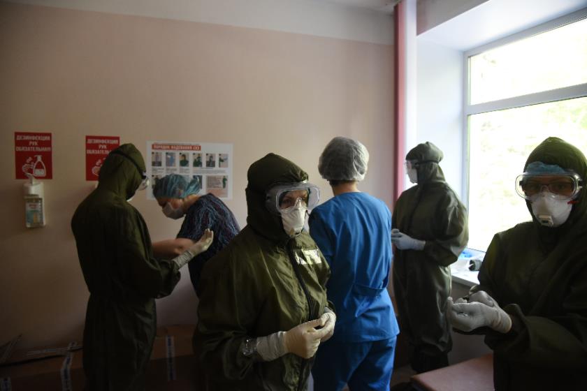 Сегодня наши коллеги журналист КГВ Татьяна Петрова и фотокорреспондент Георгий Орлов посетили больницу. Они застали за сборами в красную зону смену медиков, заступающих на дежурство.