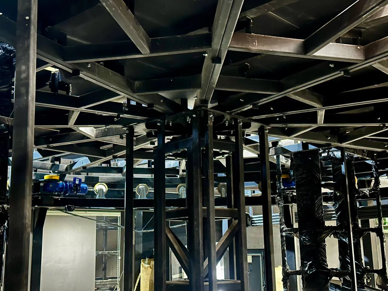 Полностью выполнены работы по монтажу металлических конструкций, прокладке наружных сетей, строительству внутренних стен и перегородок, установке оконного остекления и дверей, монтажу кровли, отделке фасада. Практически все внутренние отделочные работы и установка технологического оборудования находятся на этапе завершения. Ведутся работы по монтажу архитектурной подсветки здания.
