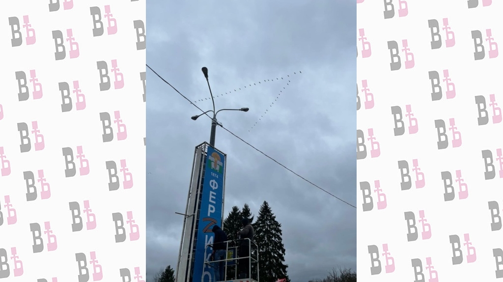 Символично, что во время монтажа обновленного баннера в небе был замечен пролетающий клин журавлей.