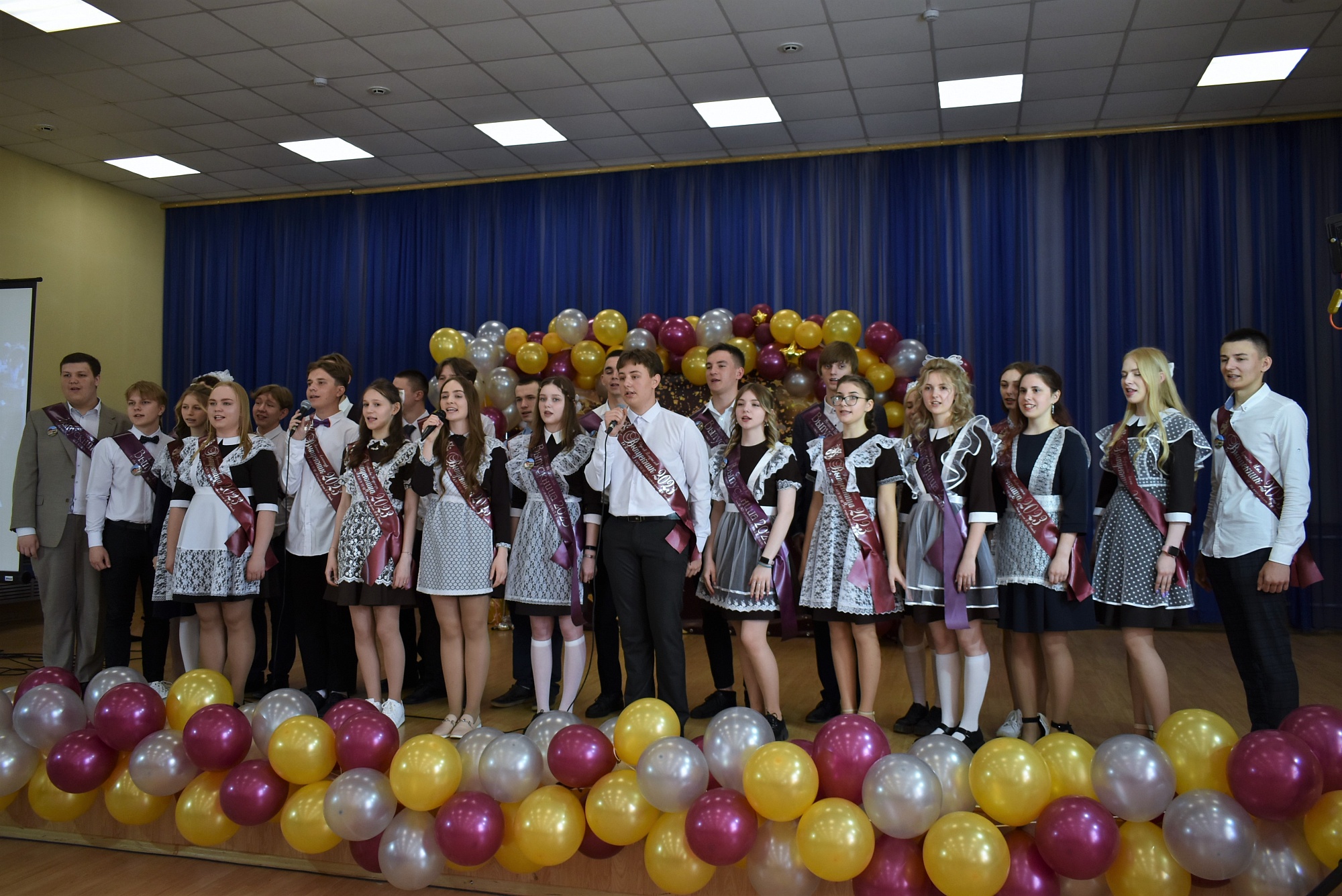 Завершился выпускной громким школьным звонком – он пробежал по коридорам, затем влетел и в актовый зал, где его песню подхватил звонкий колокольчик в руках лучших учениц школы - Екатерины Булычевой, Натальи Несоновой и Надежды Щербаковой.