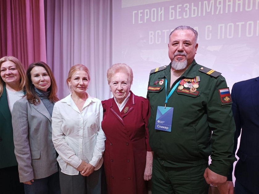 Участник четырех военных конфликтов, ветеран СВО, гвардии младший сержант Леонид Лапин в Новосибирск на встречу приехал из Абакана. Он является лектором Российского общества «Знание», рассказывает подрастающему поколению историю своего деда Герасима Лапина, который стал одним из героев знаменитой песни «На Безымянной высоте».