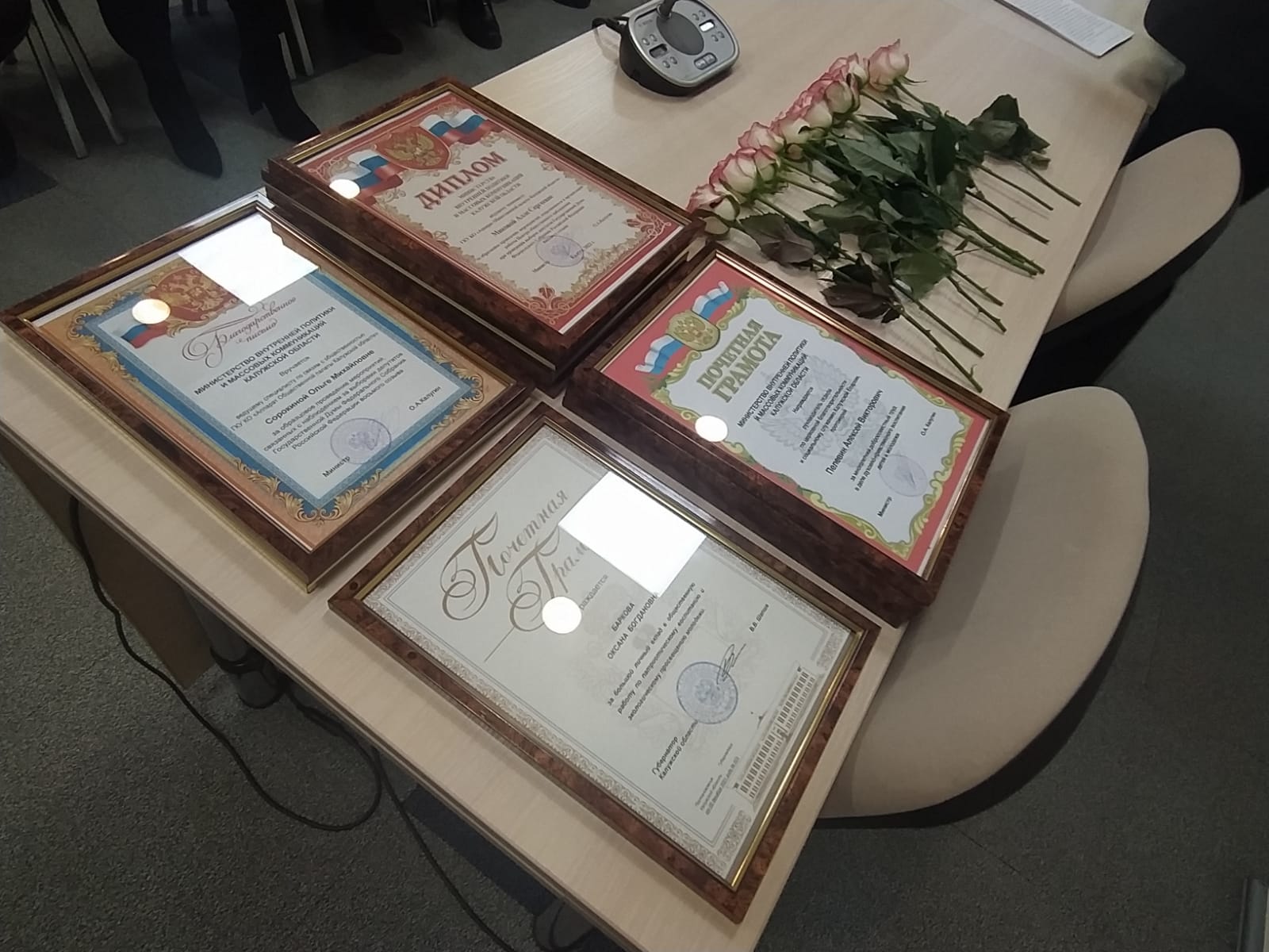 Министр вручил представителям наиболее активных некоммерческих организаций почётные грамоты, дипломы и благодарственные письма Министерства внутренней политики и массовых коммуникаций области. Наград удостоились руководитель АНО "Экологическая и патриотическая инициатива" Оксана Баркова, священник Алексей Пелевин, ректор Среднерусской академии Оксана Лысенко, член общественной палаты Иван Головид и другие.