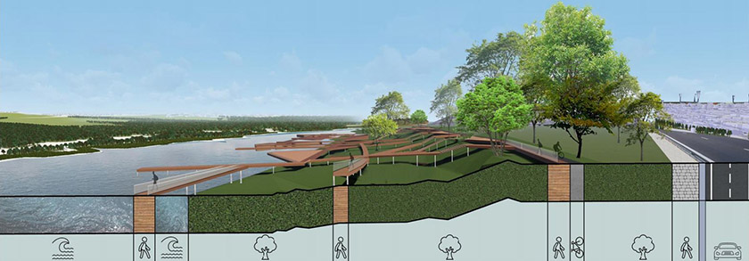 10 км, общей площадью 832 гектара. В течение года молодые специалисты разрабатывали уникальные концепции калужских набережных. Всего в работе приняли участие 13 ведущих вузов страны.