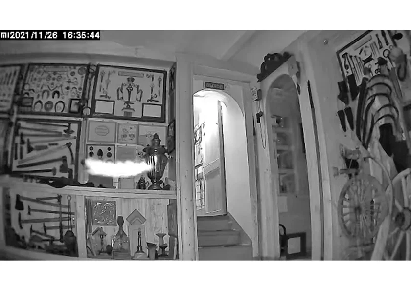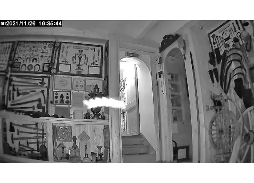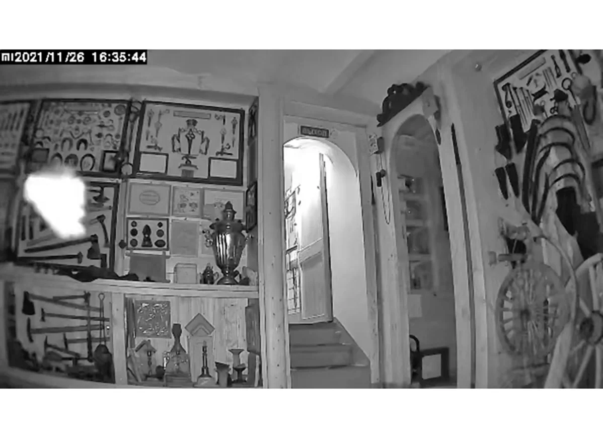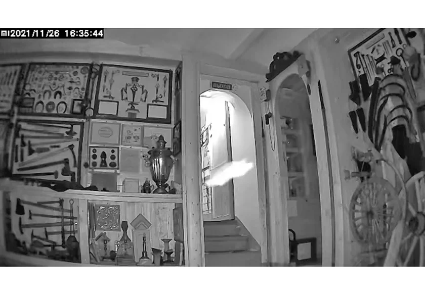 Руководитель музея Владимир Федоров, будучи сам специалистом-айтишником, заинтересовался несколькими эпизодами, снятыми охранными камерами ночью в пустых помещениях. На кадрах были не воры или подобные асоциальные личности, а все те же белые пятна, черточки и т.п. Большинство легко объяснить пылинками, но один ролик озадачил: на нем в поле зрения камеры влетает некий белый объект, оставляя после себя белый, состоящий как будто из отдельных пятнышек трек, выписывает несколько виражей и исчезает, превращаясь в точку.