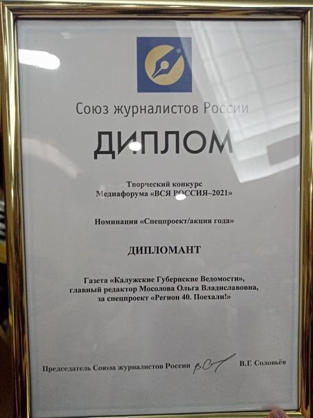 Среди дипломантов в номинации "Дизайн" - обнинская газета "Мы и Вы" (главный редактор Евгений Серкин). В номинации "Лучшая авторская публикация" третье место заняла авторская работа Степана Федорова "Неделя Боровского района", главный редактор Светлана Зацаринная. Поздравляем коллег!