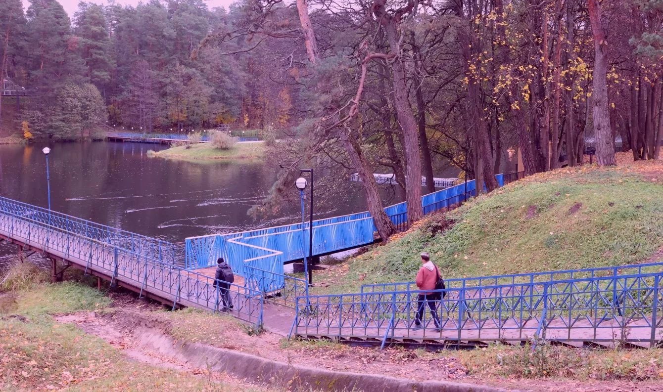 Далее дорожка идет прямиком к лодочной станции. Здесь предусмотрены парковка и санитарная зона. А за «больничным» мостом, который тоже заметно преобразился, основные объекты: сказочный болотный парк, крещенская купель и источник.