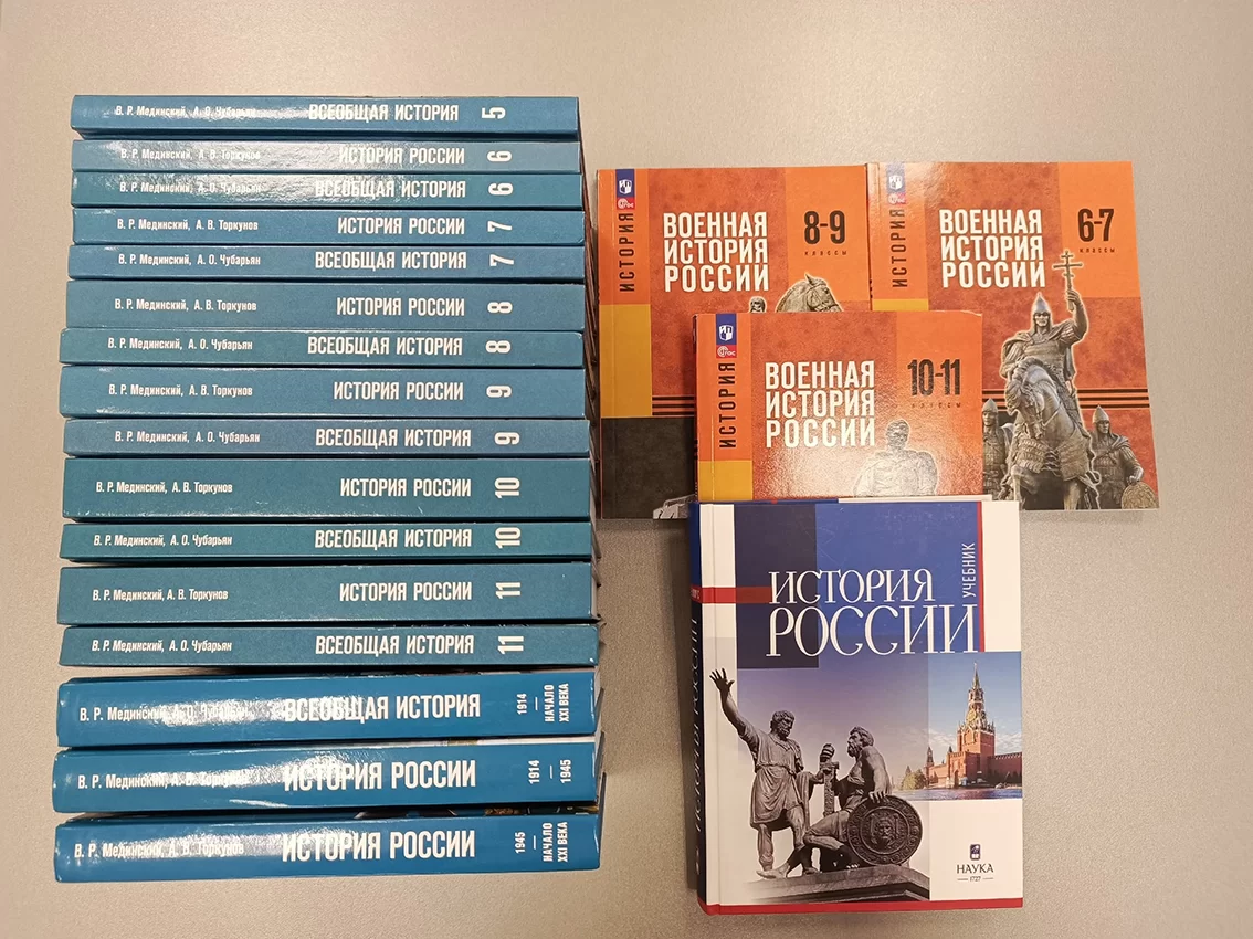 Авторами обновленных учебников стали ведущие российские историки и педагоги: помощник президента РФ, председатель Российского военно-исторического общества Владимир Мединский, ректор МГИМО Анатолий Торкунов, научный руководитель Института всеобщей истории РАН Александр Чубарьян и другие специалисты — всего около 50 ученых и экспертов.