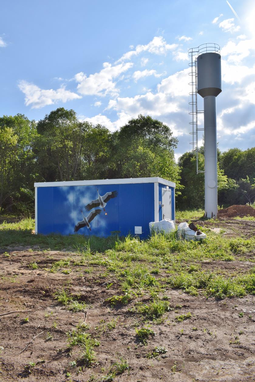На территории нового объекта пробурены две артезианские скважины, основная и запасная. Установлены водонапорная башня, к которой проложена линия водопровода от центральной магистрали. Готовится к запуску станция очистки природной воды от железа и примесей. После проведения пусконаладочных работ и начала работы новой системы водоснабжения вода в селе обещает пойти не просто с хорошим напором - она будет чистой.