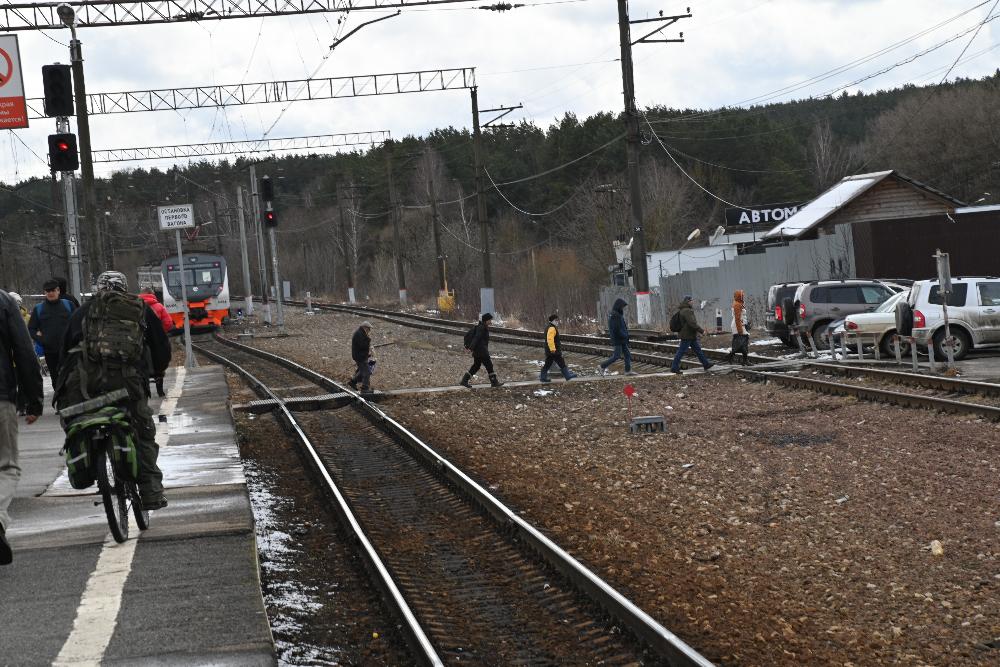 Бьет в лицо не по-апрельски холодный ветер. Хочется отвернуться и поглубже надвинуть капюшон. И не только мне. Несмотря на рабочий полдень, по настилу через пути снуют люди. Железная дорогая фактически разделяет калужский микрорайон Азарово. На работу, в школу, в магазин жители ходят по единственному переходу на станции или прямо по полотну.