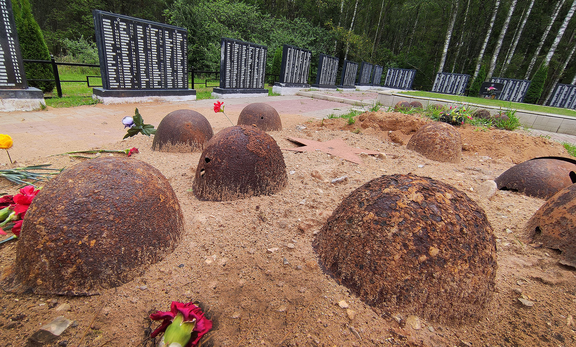 Не зря говорят, что на кладбище даже птицы поют тише. И здесь, на поляне, где лежат сотни советских бойцов, в день нашего приезда было очень тихо. Только мелкий дождик, словно слезинки природы, оплакивал наших защитников.