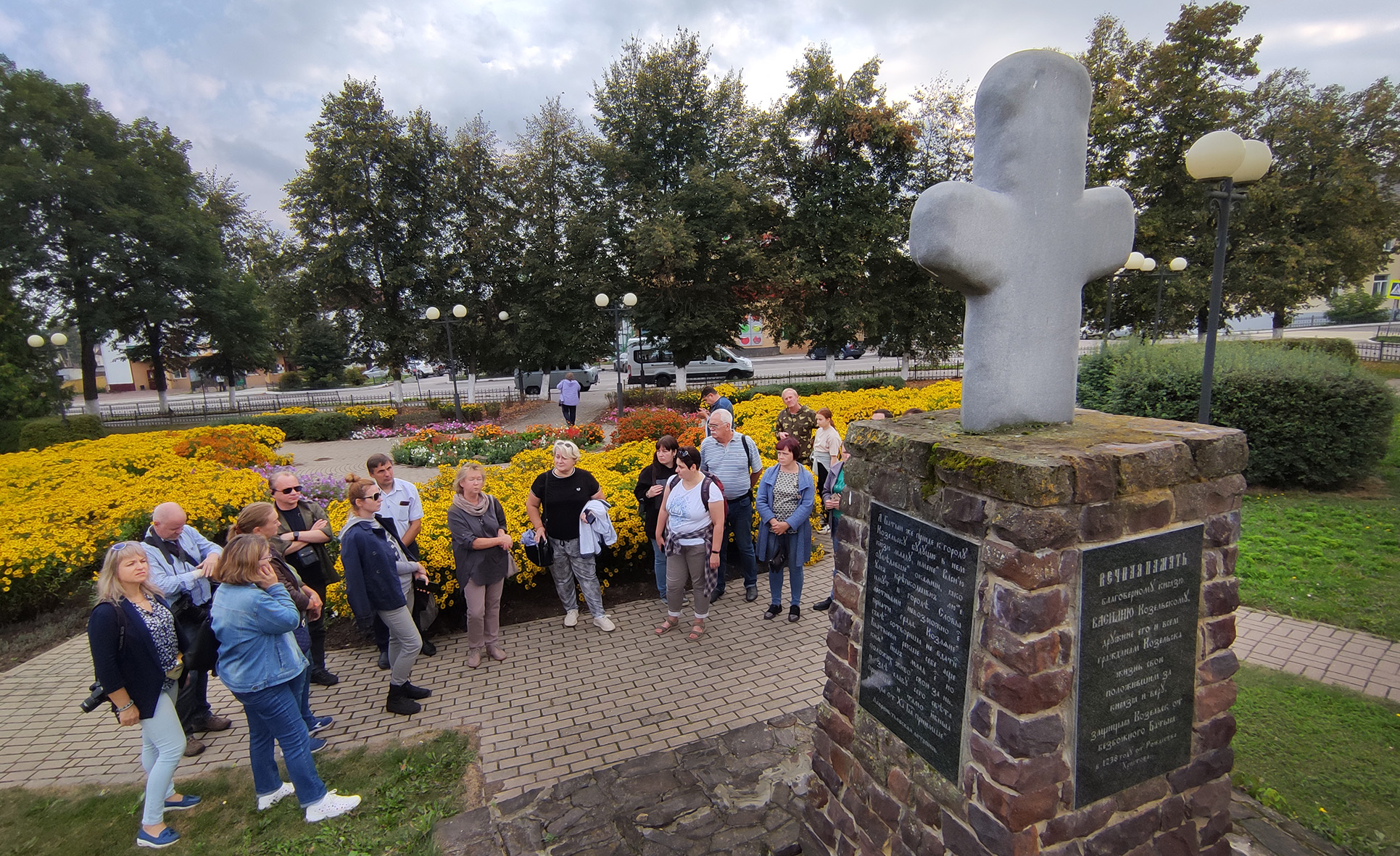 Побывали мы и у поклонного креста, посвященного мужеству и героизму козельчан. Это стилизованная копия настоящего каменного креста, хранящегося в Козельском краеведческом музее. Есть версия, что когда-то это был языческий божок. А когда на эту землю пришло христианство, то его превратили в православный крест.
