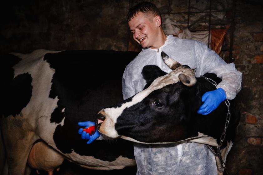 Одна из «пациенток» Сергея в Новом Казачье, белая с рыжими пятнами, заметно нервничает. Другая, черная, крутолобая буренка, тоже недовольна, фыркает и крутит головой. Тут начинаются настоящие чудеса. Наблюдаем со стороны, как Сергей набирает лекарство в шприц, подходит к корове, чтобы сделать ей укол в шею. Но молниеносное движение, которым Сергей вводит кальцийсодержащий препарат, для нашего зрения неуловимо. Молодой ветврач объясняет, что действовать быстро в таких случаях необходимо для самосохранения: коровам больно, и они могут сделать человеку тоже больно, но уже гораздо сильнее. И вообще, корову нельзя пугать во время осмотра, никаких резких движений или крика быть не должно. Буренка от стресса способна нанести травму человеку. И Сергей рассказывает случай из своей практики.