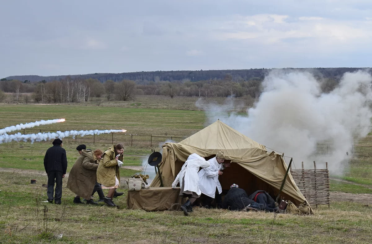 На два дня, 18 и 19 апреля, поле базы отдыха «Усадьба Отрада» недалеко от села Волковского превратилось в поле боевых действий. Чтобы воссоздать атмосферу военных лет, сюда съехалось более сорока военно-исторических клубов из разных городов России. В декабре 1941 года в этих местах, на подступах к Москве, решалась судьба нашей Родины. Враг, рвавшийся к столице, был остановлен в ходе контрнаступления советских войск.