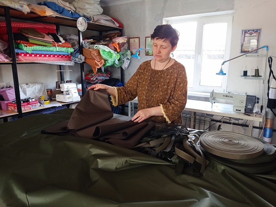 Вначале вместе с волонтёрами из Кировского района (территориально деревня Погост ближе расположены к соседнему райцентру, нежели к Людинову) шила спальные мешки, о которых буквально умоляли жёны призванных на мобилизацию мужчин. Затем стали изготавливать удобные, раскладные и непромокаемые пятиточечники, чтобы военнослужащим не приходилось сидеть или лежать на голой холодной земле.