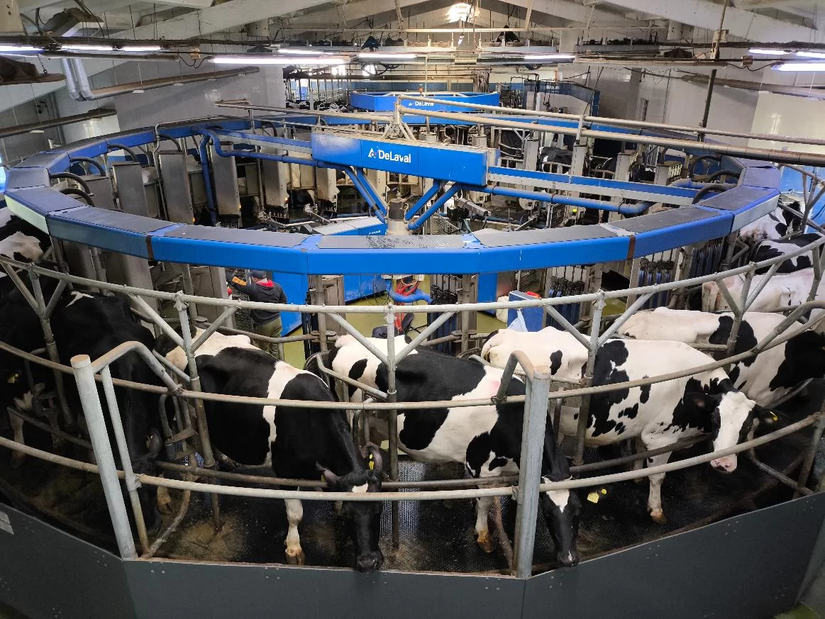 Журналистам показали молочно-товарный комплекс, рассчитанный на содержание тысячи голов. Все, что можно, здесь автоматизировано и роботизировано: от кормления коров и уборки навоза до карусельного доильного комплекса.