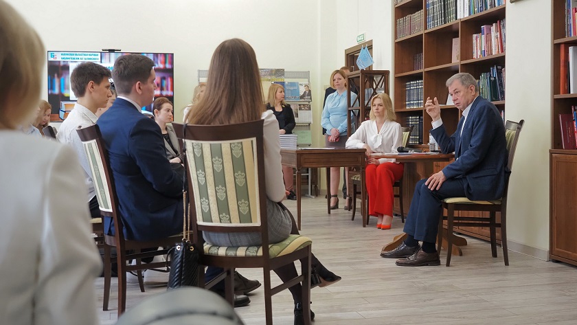 Встреча студентов КГУ имени К.Э. Циолковского с членом Совета Федерации, председателем комитета по бюджету и финансовым рынкам, экс-руководителем региона Анатолием Артамоновым состоялась сегодня, 30 апреля, накануне майских праздников и, кстати, юбилея Анатолия Дмитриевича. Она была организована в рамках цикла «В диалоге с молодежью» и проходила в зале губернаторской библиотеки, созданной год назад при его непосредственном участии.