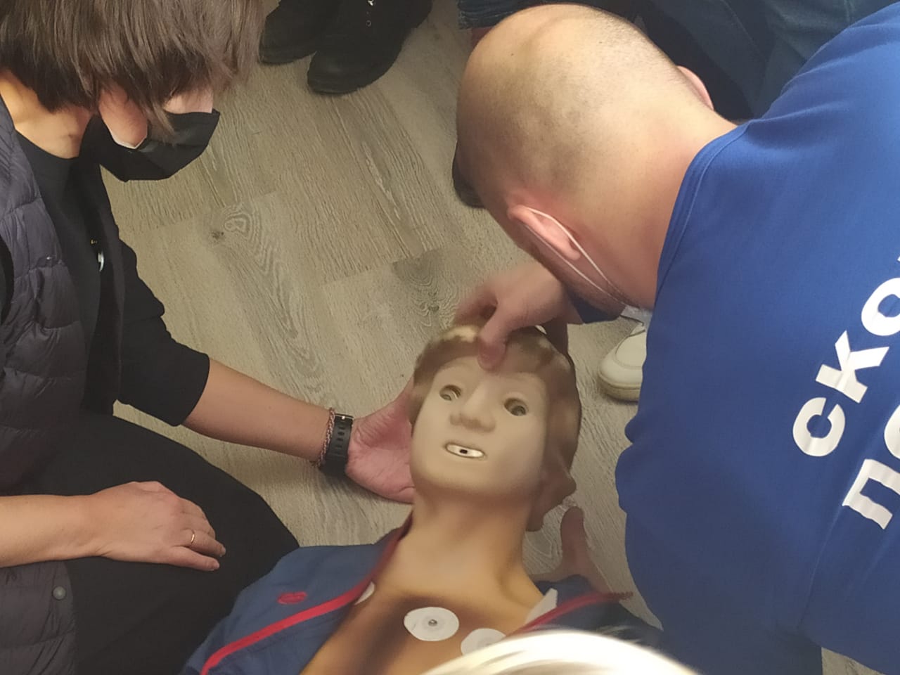 – Локти не сгибаем. Толкаем сильнее, на 5 сантиментов вниз, – командует фельдшер. – Сильнее, не руками, а всем телом. Вы должны нависнуть над ним. Нет, ладони отрывать нельзя.