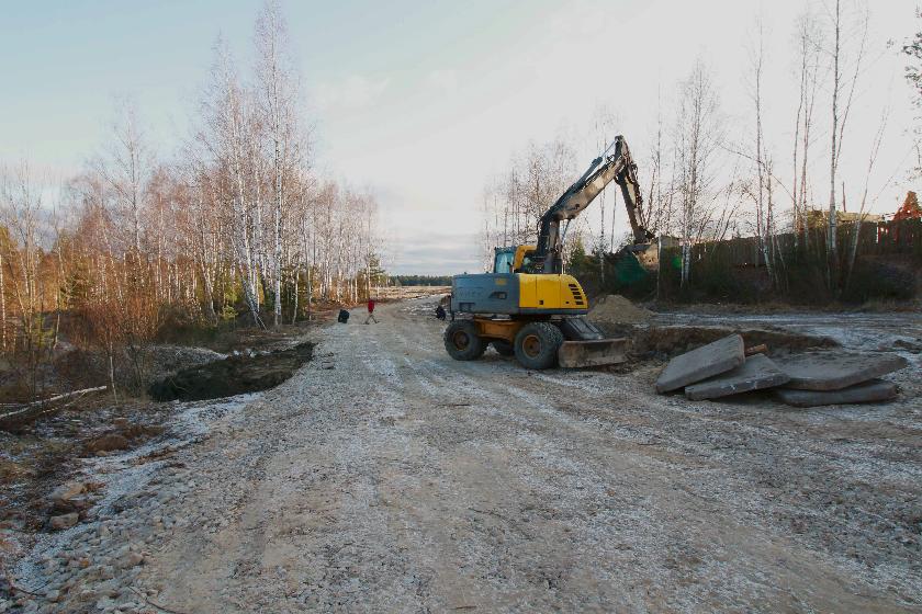 На инвестиционной площадке уже начались приготовления к строительству, а по западной и северной окраине города к ней потянули нитку дороги. Точнее, дорога там всегда была. Как бы... Местами грунтовая, местами вымощенная остатками асфальта или железобетонными плитами. На пикник к озеру, мимо которого она проходит, добраться можно, но для регулярных грузовых перевозок этот проезд не годился.Чтобы трафик не пошёл через город, администрация заключила контракт на реконструкцию этого проезда. Дорогу расширили. На песчаное основание уложили щебёночное покрытие. Уплотнили и отсыпали щебнем обочины. На момент, когда писалась эта статья, недостроенным оставался небольшой участок, где подрядчик укладывал пересекавшую трассу ливнёвку.