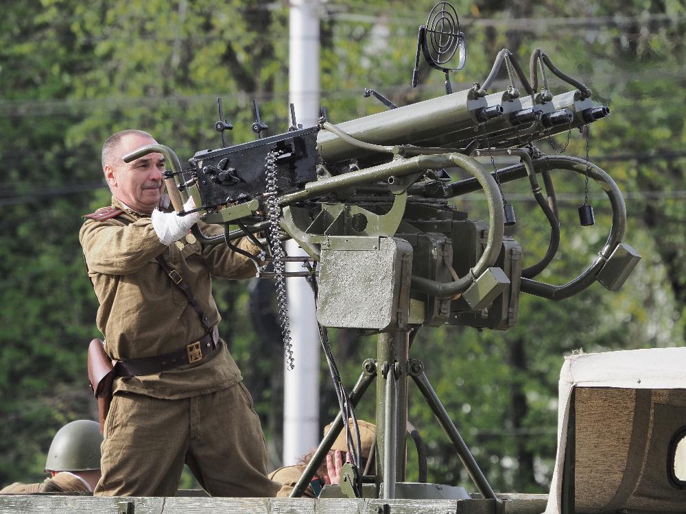 В сквере имени Ленина будет работать площадка «Май 45-го», где можно будет посмотреть технику и оружие Победы. Прозвучат песни и будут исполнены танцы военных лет.