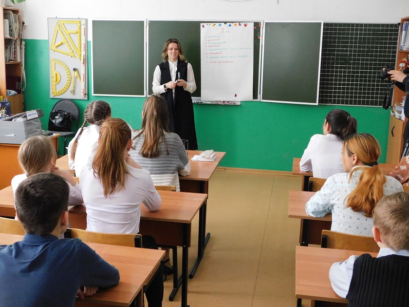 В начале занятия ученики все вместе выявляли качества, которые должны быть у современного учителя, а затем поделились на группы, чтобы нарисовать портрет идеального преподавателя. В конце классного часа, ребята представляли свои работы.