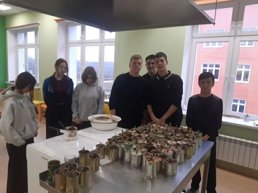 Так, ученики Медынской средней школы вместе с педагогами и родителями собрали для фронта продукты длительного хранения, в том числе чай, кофе и сладости, а также теплые носки, батарейки и предметы гигиены.
