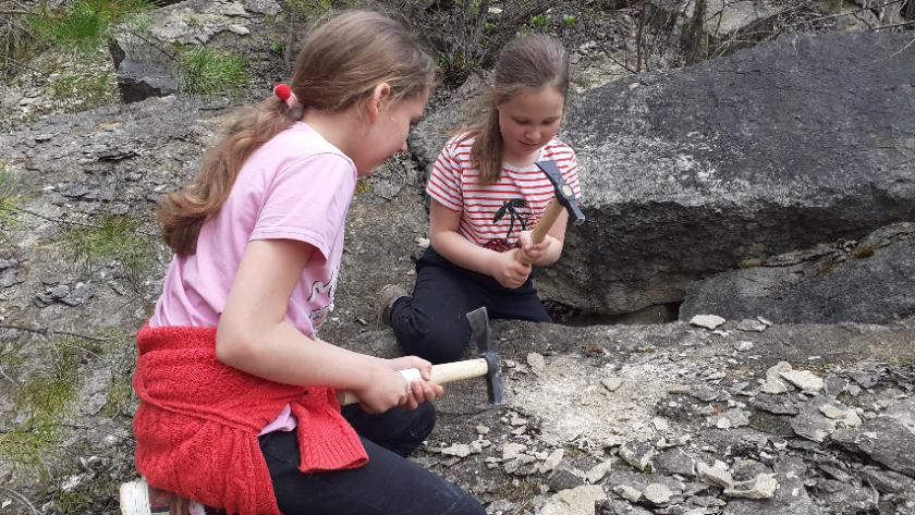 В карьере сохранились древние пласты известняка, частички железной руды, халцедона, кальцита. Дети были в восторге. Вооружившись геологическими молотками, они с энтузиазмом откалывали куски породы, которую в качестве артефактов оставят себе на память. В процессе работы у них возникало много вопросов, на которые терпеливо отвечал Евгений Ступин.