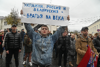 Съемка демонстрации длилась часа три-четыре. Многочисленные дубли, недовольные возгласы «ну вот, опять кто в лес кто по дрова». С ЗИЛа командовали задействованные в эпизоде актеры Дмитрий Гурьянов (Костылин) и Владимир Стеклов (Командир). Массовку, состоящую из 185 калужан, предводитель ополчения подзадоривал лозунгами: «Большую пенсию жителям Калуги!», «Хороших мужчин женщинам Калуги!». Сработало – сцену наконец снять удалось.