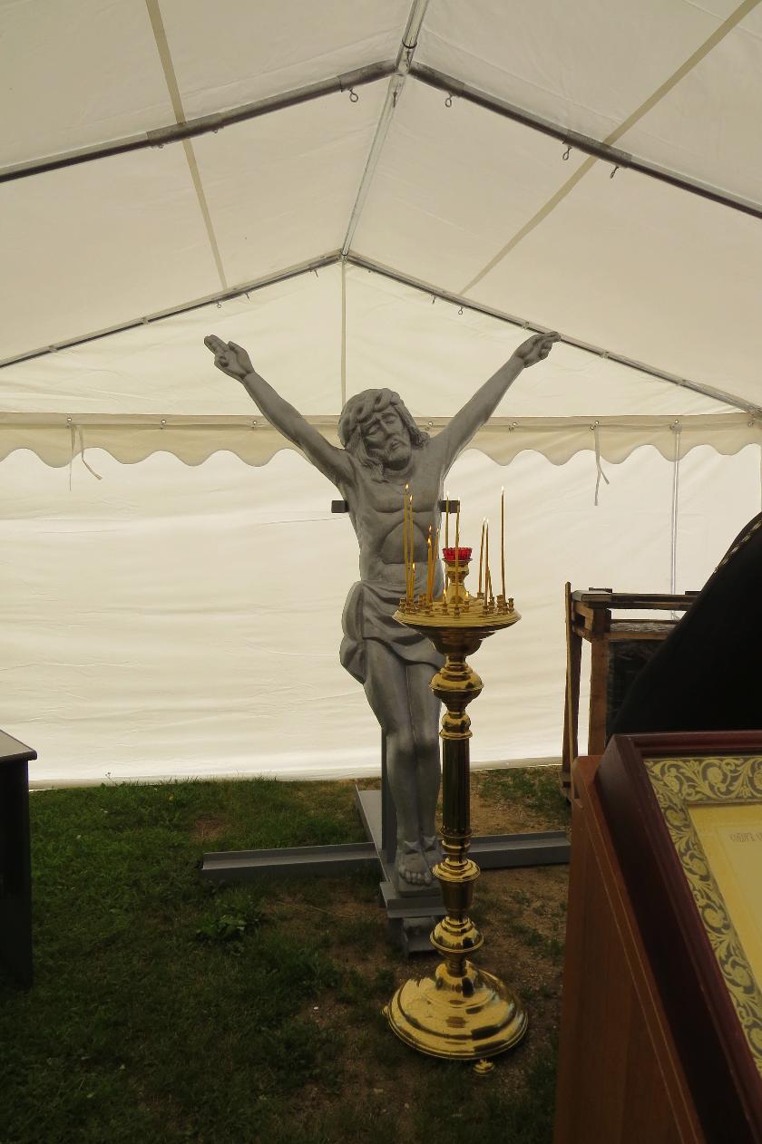 Специалисты предприятия изготовили для скульптуры надёжную опору. На завод за находкой приехал настоятель монастыря иеромонах Андрей (Синицын). Распятие было доставлено в монастырь и установлено на всеобщее обозрение.