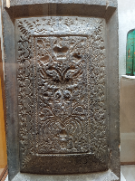 Один из экспонатов - большая доска, по окантовке которой идет геометрический растительный орнамент, а в центре - изображение орла - символа царской власти. Такие пряники были очень популярны в народе, их так и называли - «орленые» или «пряники с орлом».Фото автора.