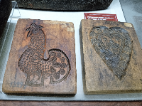 Также в экспозиции можно увидеть пряничные доски с надписью, петушком и сердечком. Кстати, орнамент с сердечком был востребован - пряники с сердечком тоже имели свою традицию. Если парень был влюблен в девушку, он дарил ей «сердечный» пряник. Были случаи, когда юноша стеснялся открыто выразить свои чувства. Он молча подавал избраннице пряник, и девушка без слов понимала: он в нее влюблен!