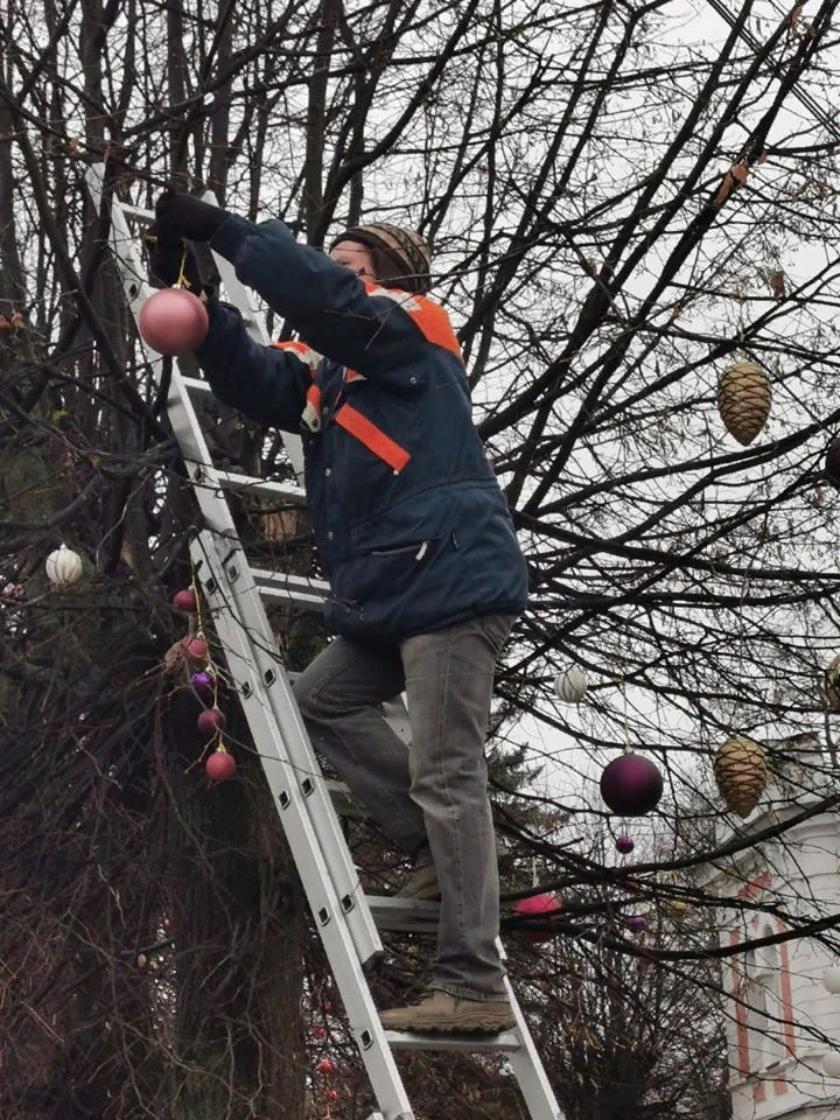 Уже наряженная елка на площади теперь не одинока: новогодними в этом году стали в Тарусе и липы, и туи, и кустарники. Украшение центра города продолжится: на прошлой неделе в мастерской ремесленников прошел мастер-класс по декору древесных спилов, которые превратились в симпатичные игрушки. В планах творческого сообщества - установка на закрытом на зиму городском фонтане деревянной инсталляции, рождественской карусели в стиле русской зимы.