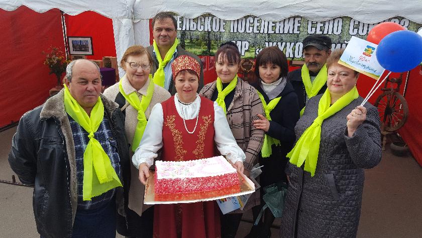 С шарами и флагами, с задорным смехом и несмолкающими искренними поздравлениями дружно прошлись по улочкам микрорайона Протва города Жукова жители и гости района в традиционном шествии под торжественную музыку оркестра.Три городских и дюжина сельских поселений района в своих презентациях показали изюминку своего родного края, продемонстрировав особенности каждого муниципалитета, и все старались щедро угостить гостей праздника. В каждом из 15 поселений приготовили торт с изображением буквы, и все они объединились в один большой юбилейный торт, размер которого составил рекордные шесть метров.