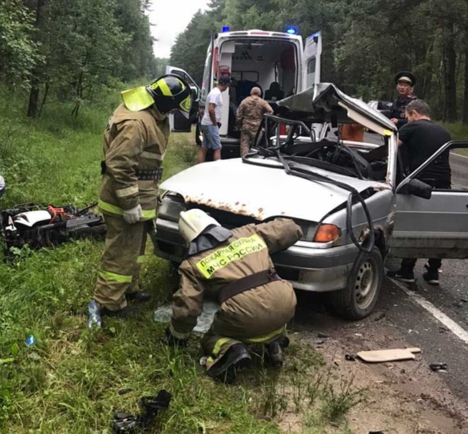 Утром 4 июля на 84-м километре автодороги Москва - Рославль 40-летний житель Курской области на автомобиле «Лада Калина» выехал на встречную полосу и угодил под грузовик «Вольво» с полуприцепом. Один из пассажиров легковушки погиб на месте, водитель и второй пассажир попали в больницу. Вероятная причина аварии - утомленный водитель уснул за рулем.
